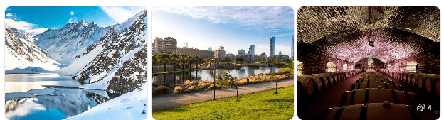 - Oferece experiências variadas (cidade, neve, vinhos, deserto, lagos, montanhas e litoral).